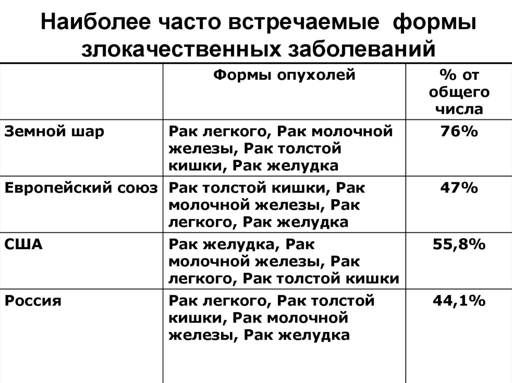 4. Наиболее часто встречаемые формы злокачественных заболеваний
