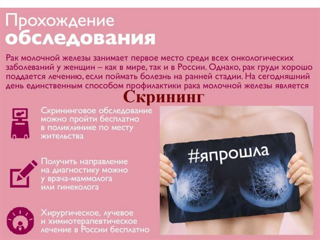 б)скрининг на выявление злокачественных новообразований молочныхжелез (у женщин):
