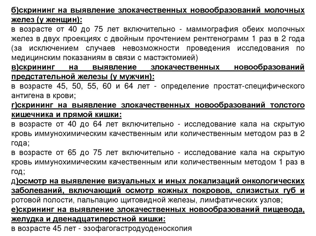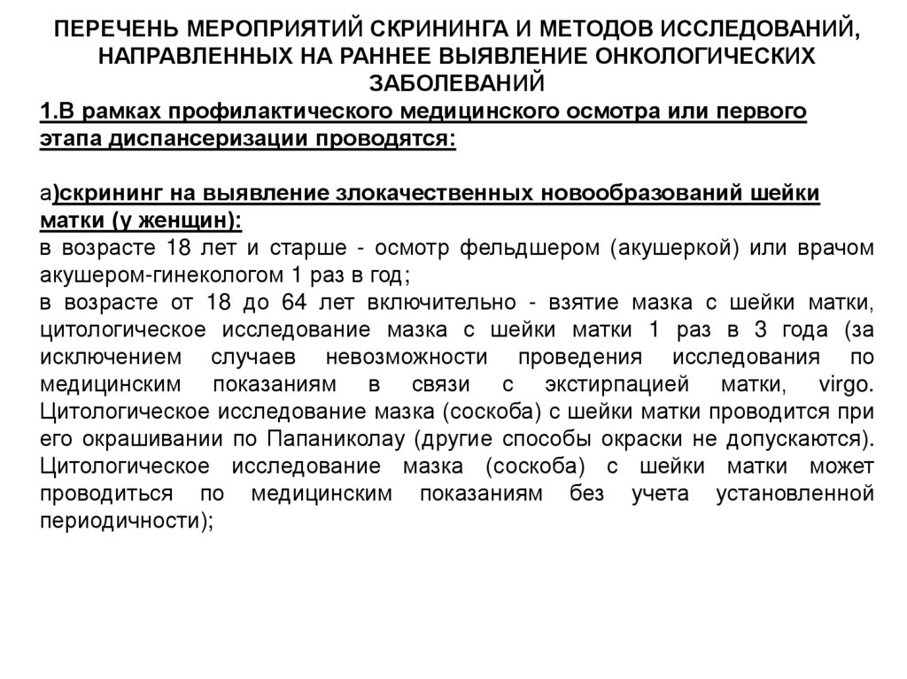 ПЕРЕЧЕНЬ МЕРОПРИЯТИЙ СКРИНИНГА И МЕТОДОВ ИССЛЕДОВАНИЙ,НАПРАВЛЕННЫХ НА РАННЕЕ ВЫЯВЛЕНИЕ ОНКОЛОГИЧЕСКИХ