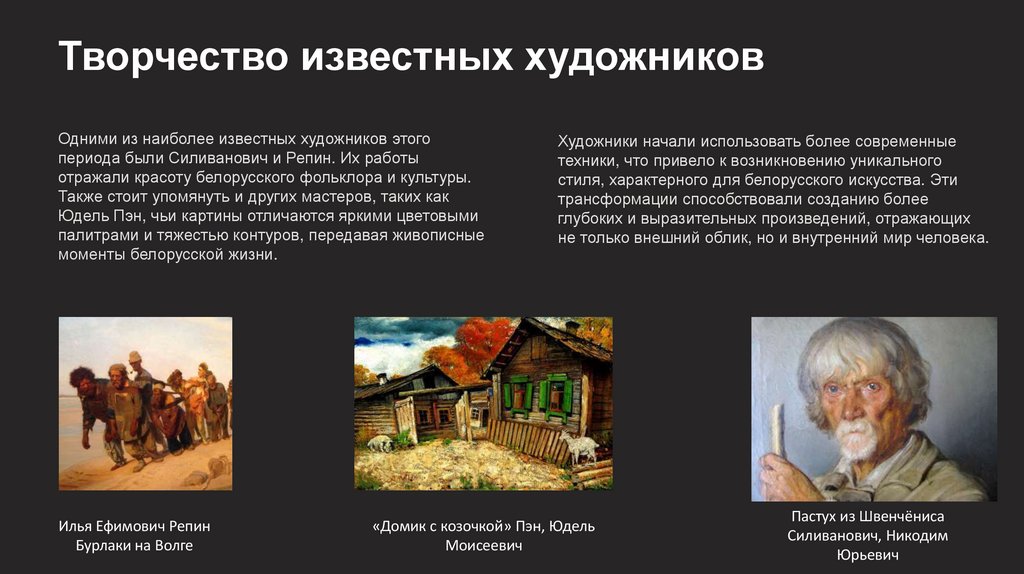 Работы художников способствовали формированию национальной идентичности белорусов.