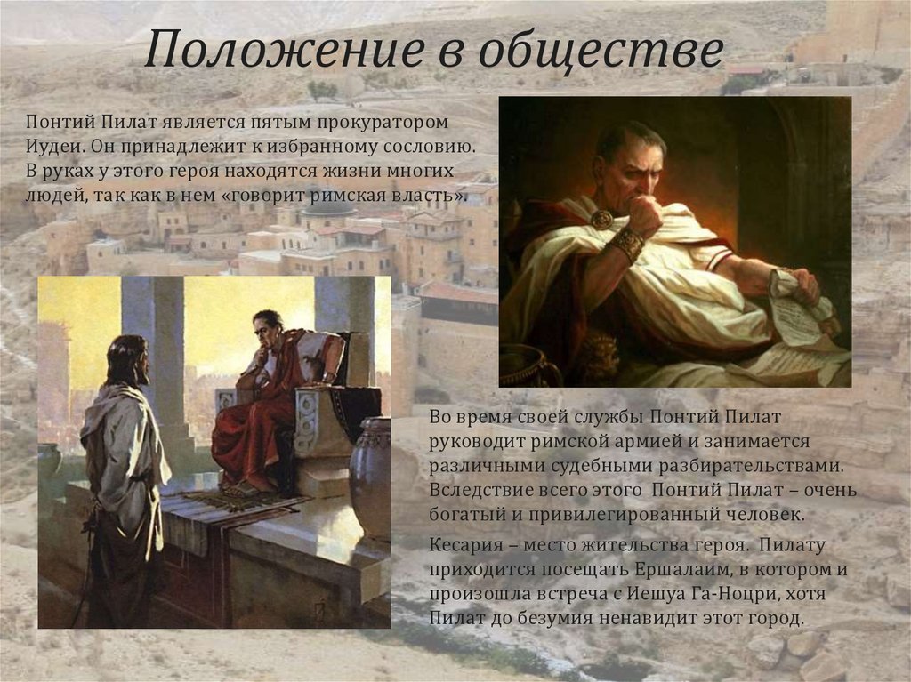 Положение в обществеПонтий Пилат является пятым прокуратором