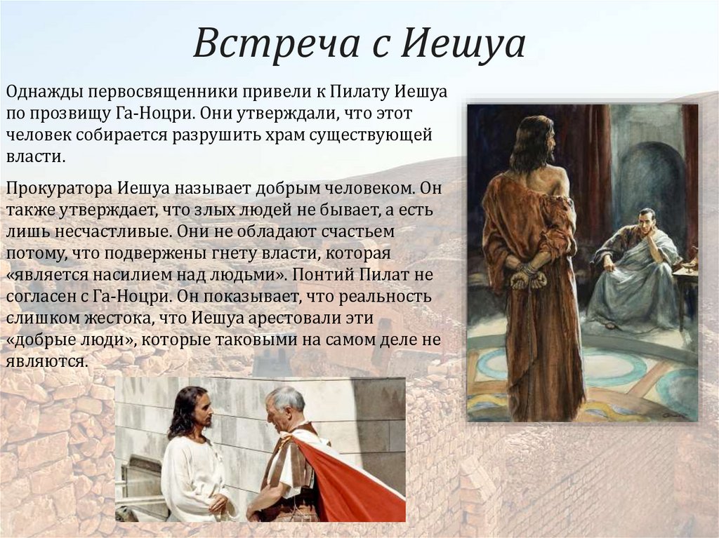 Встреча с ИешуаОднажды первосвященники привели к Пилату Иешуа