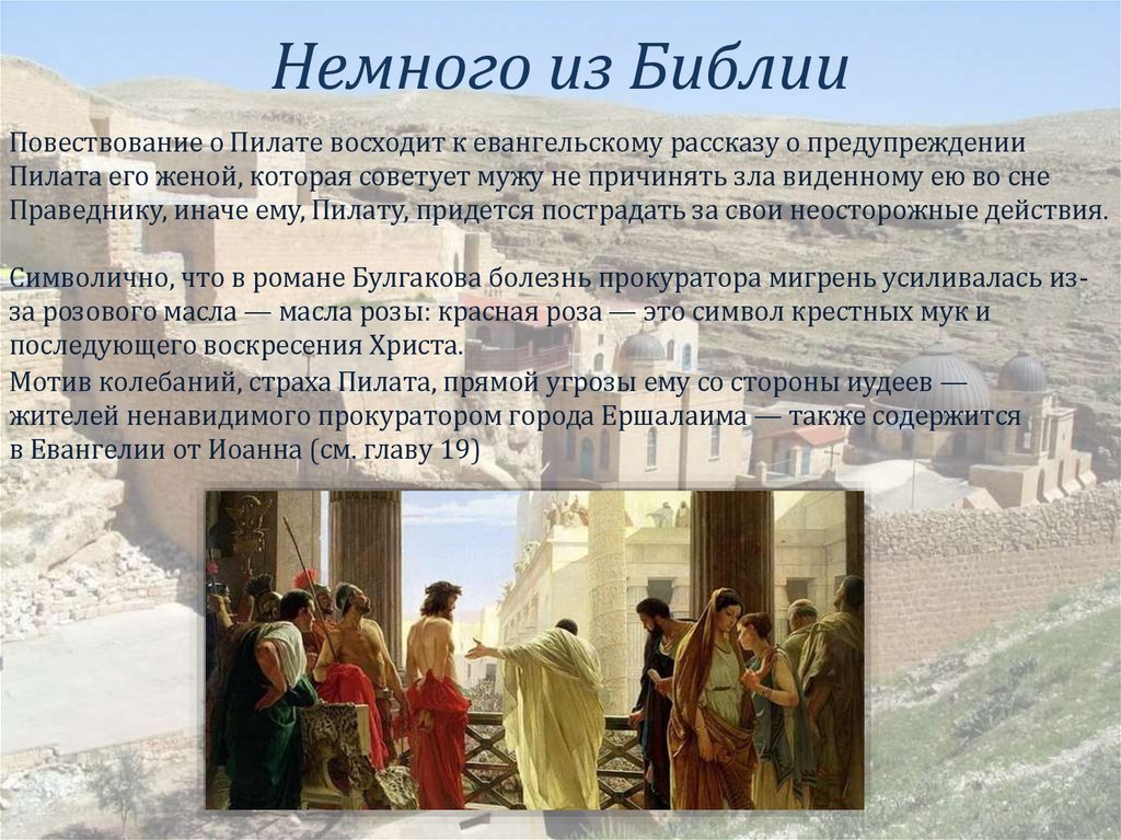 Немного из БиблииПовествование о Пилате восходит к евангельскому рассказу о предупреждении