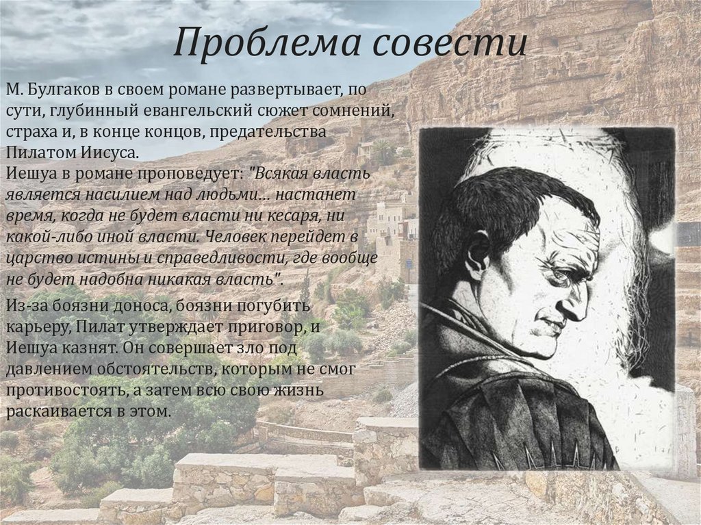Проблема совестиМ. Булгаков в своем романе развертывает, по