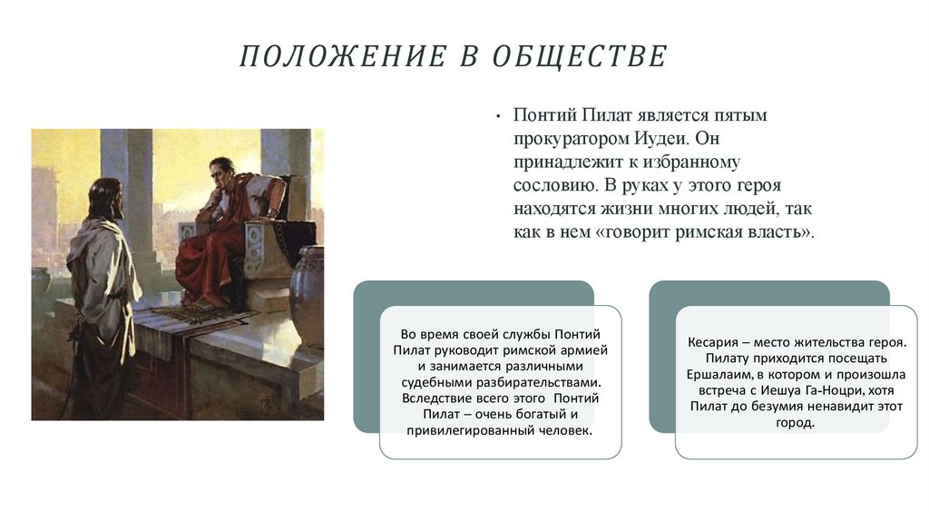 ПОЛОЖЕНИЕ В ОБЩЕСТВЕПонтий Пилат является пятым