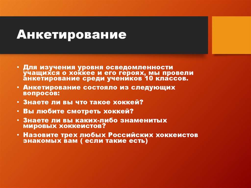 учащихся о хоккее и его героях, мы провели
