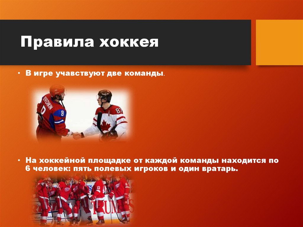 Правила хоккея• В игре учавствуют две команды.