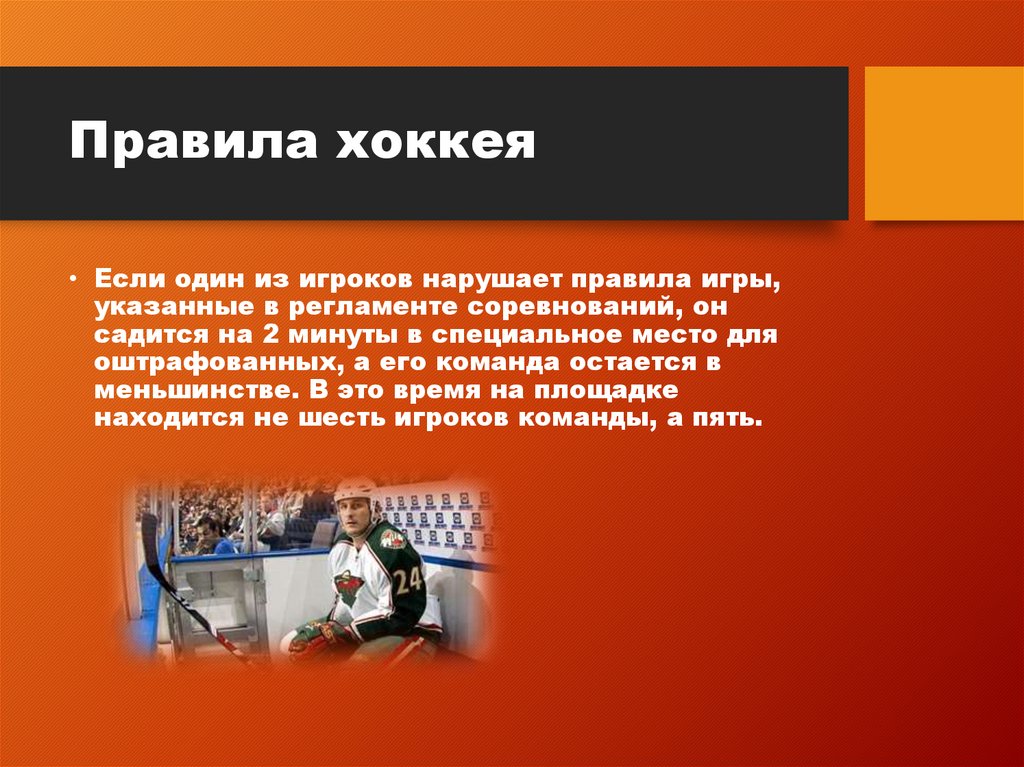 Правила хоккея• Если один из игроков нарушает правила игры,