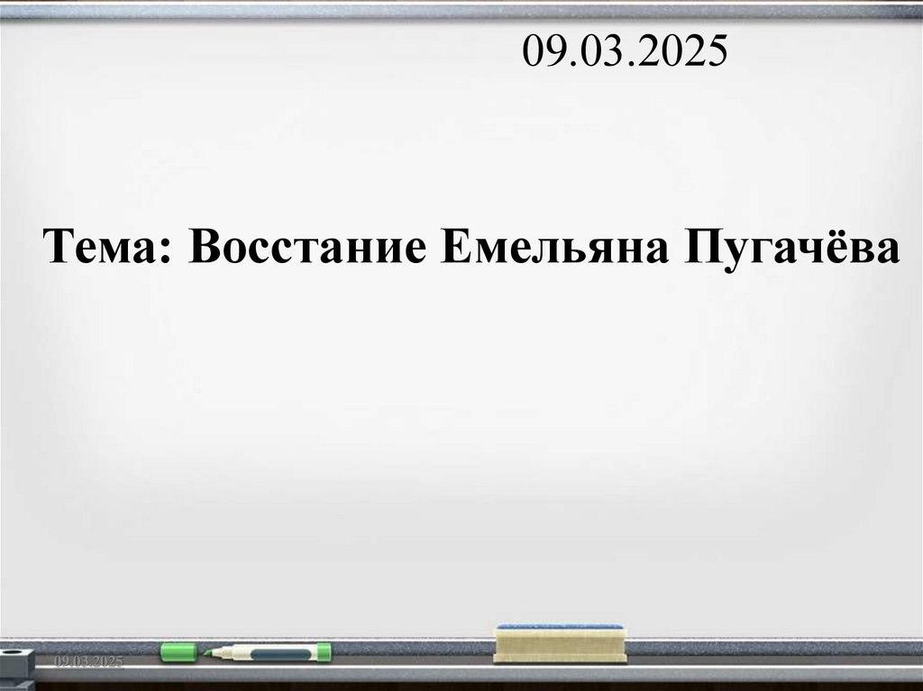 09.03.2025Тема: Восстание Емельяна Пугачёва