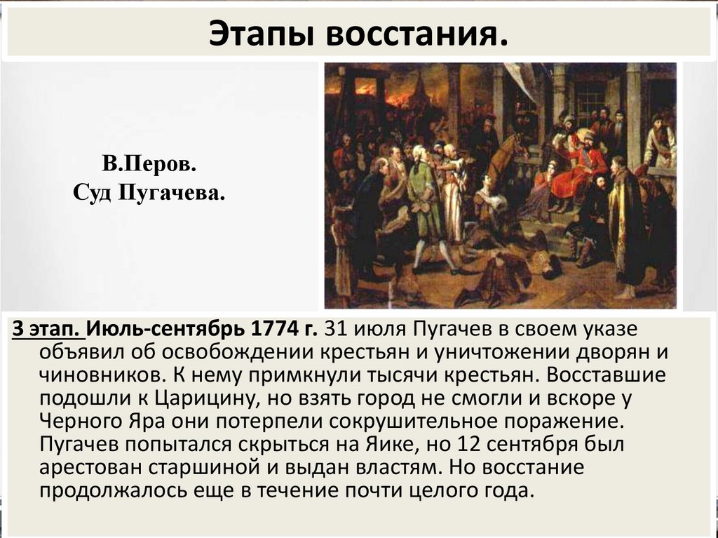 3 этап. Июль-сентябрь 1774 г. 31 июля Пугачев в своем указе