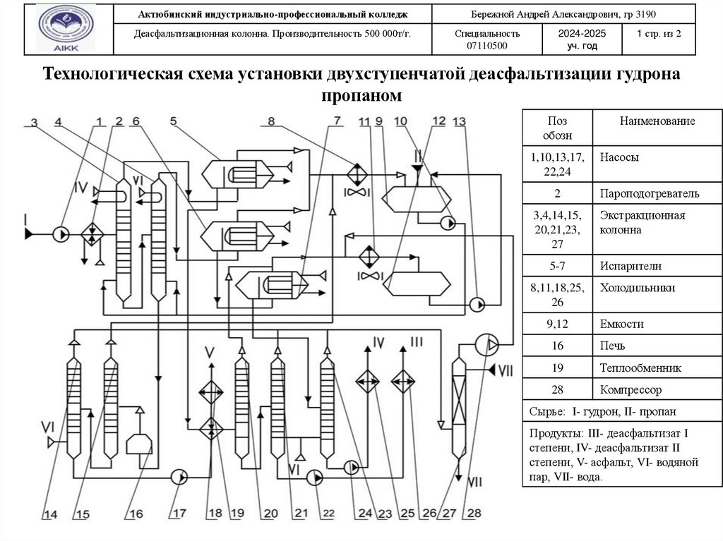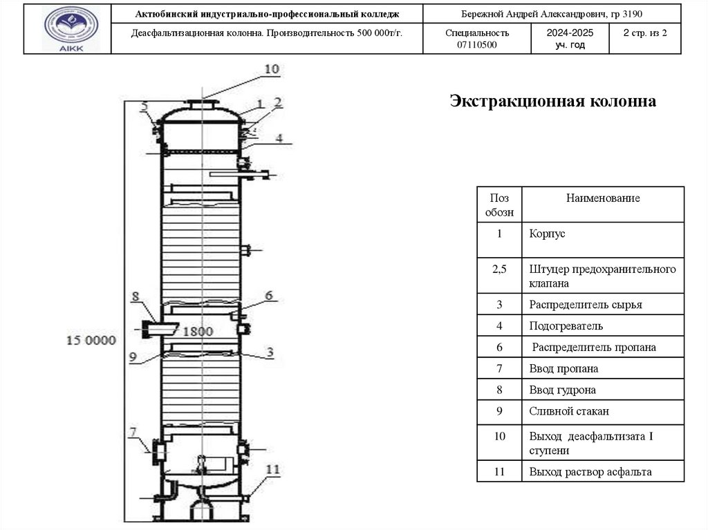 1. Тема курсового проекта: «Деасфальтизационная колонна. Производительность 500 000т/г.»