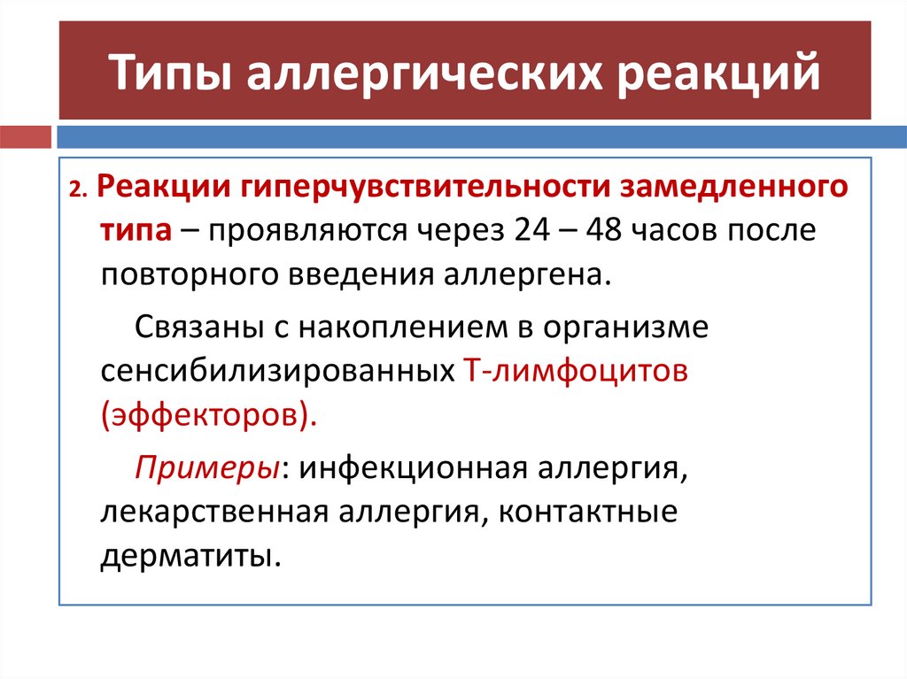 2. Реакции гиперчувствительности замедленноготипа – проявляются через 24 – 48 часов после