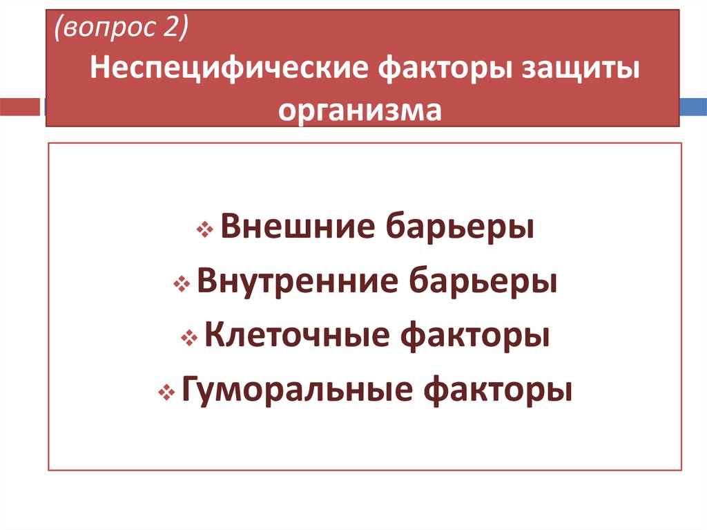 8. (вопрос 2) Неспецифические факторы защиты организма