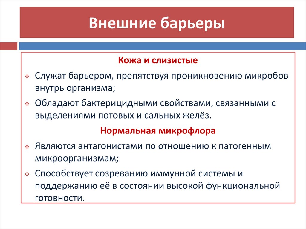 Кожа и слизистыеСлужат барьером, препятствуя проникновению микробов
