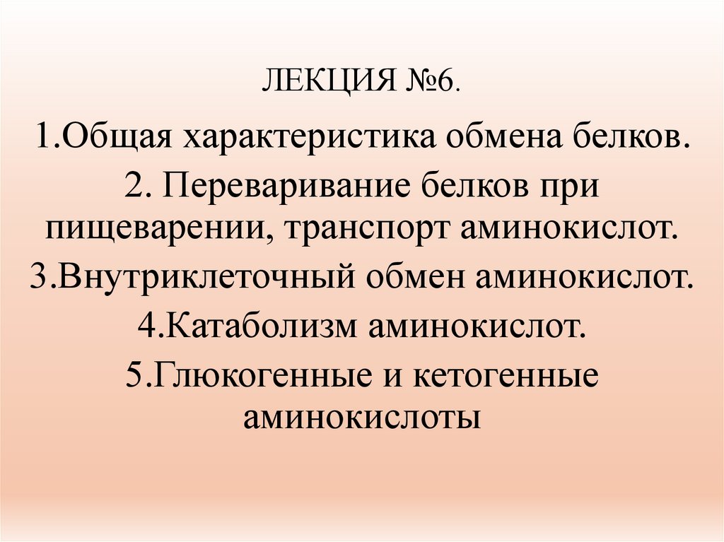 Белковый обмен в организме (лекция № 6)