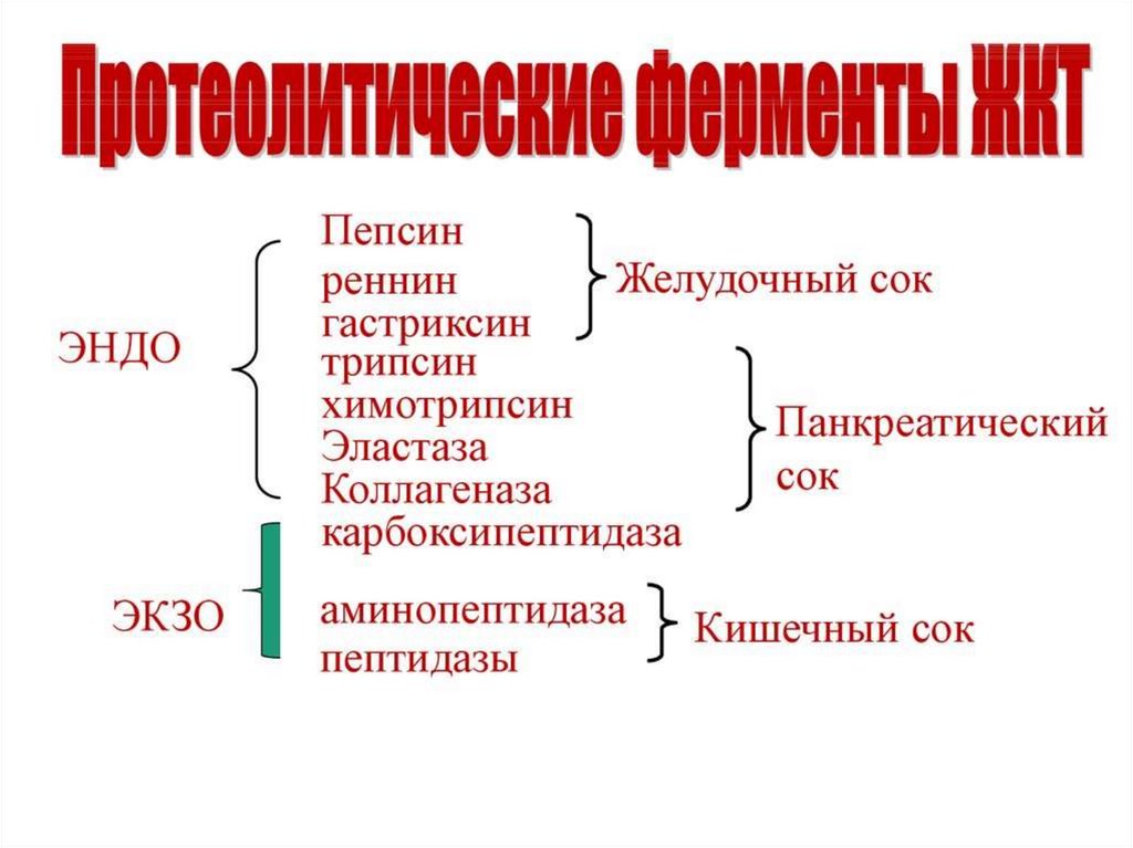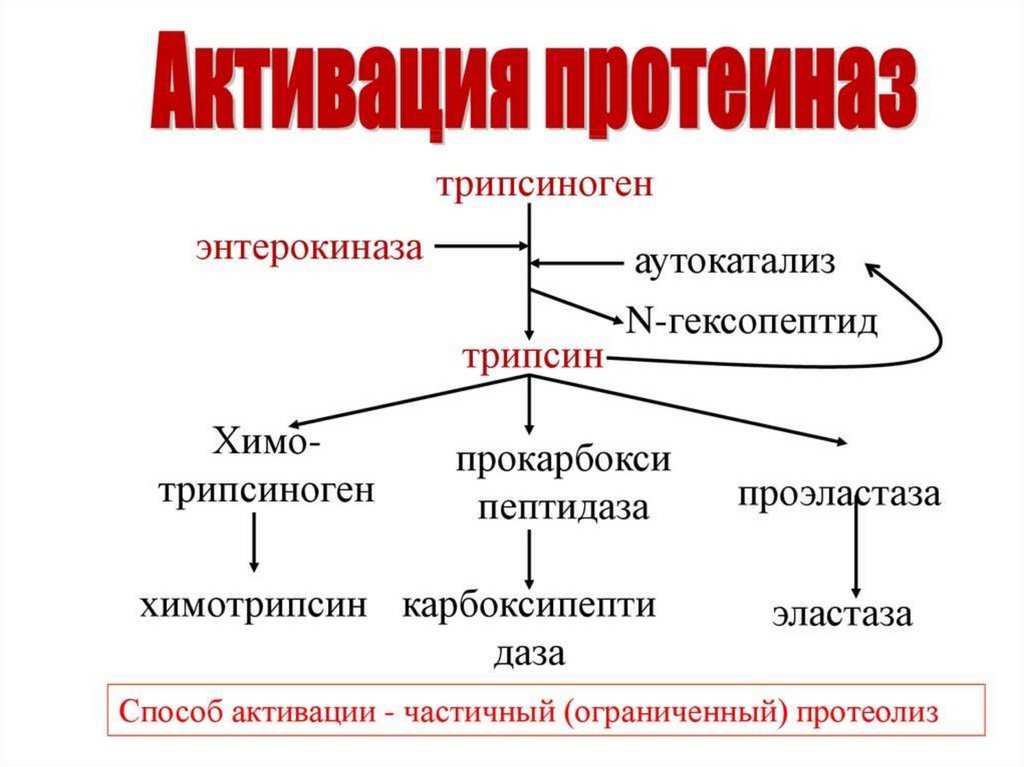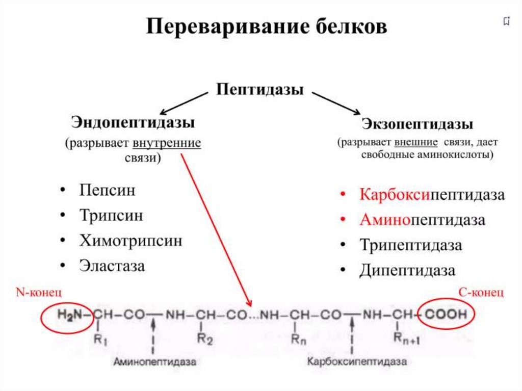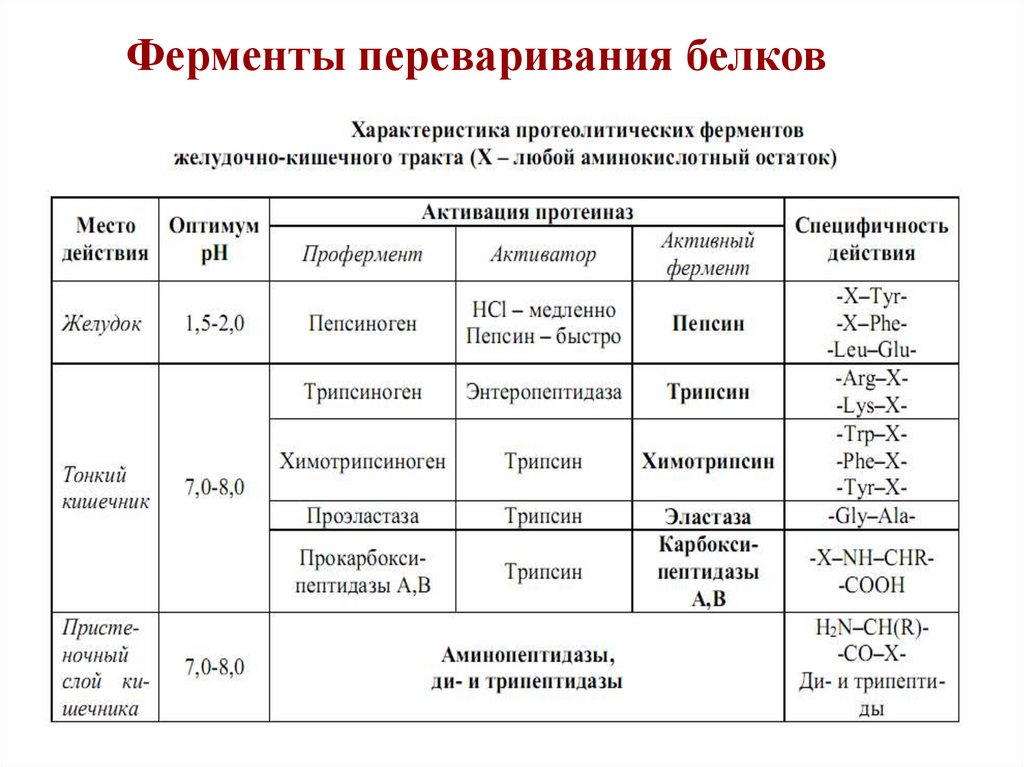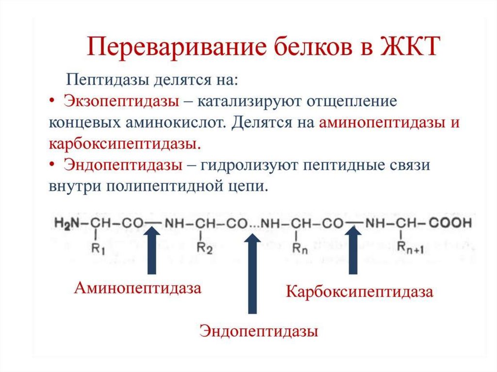 • Поэтапный протеолиз белковдо аминокислот.