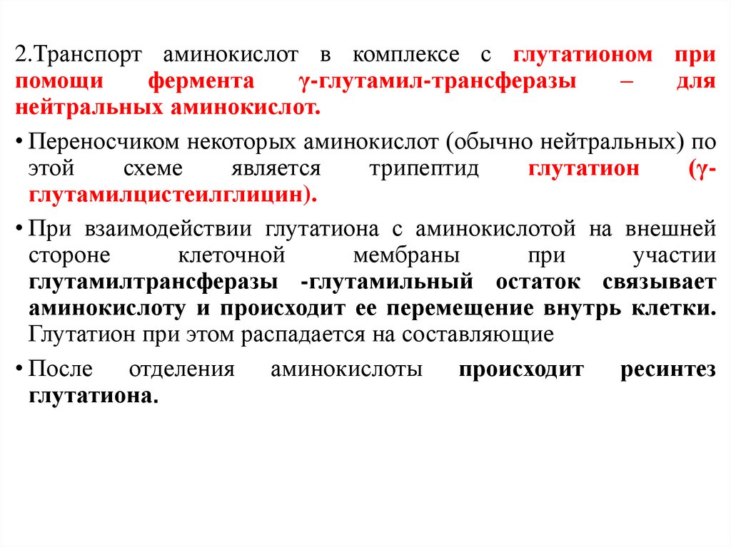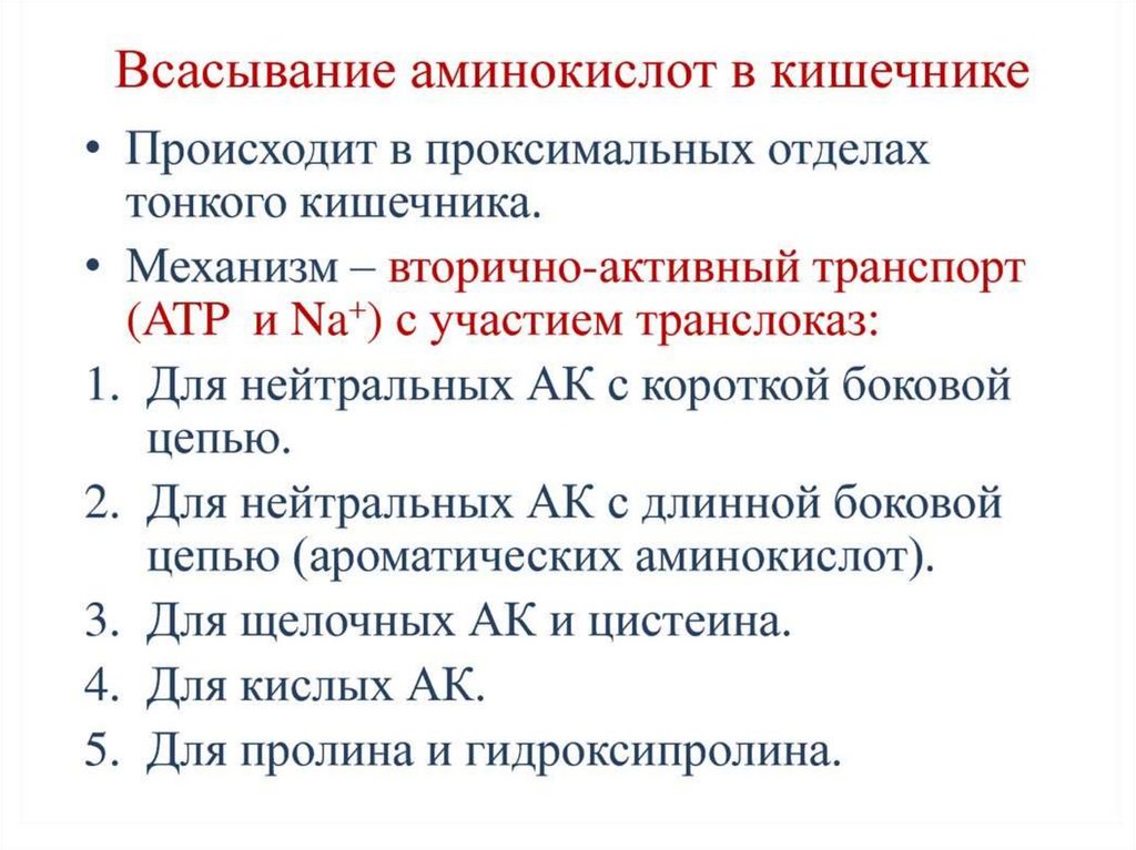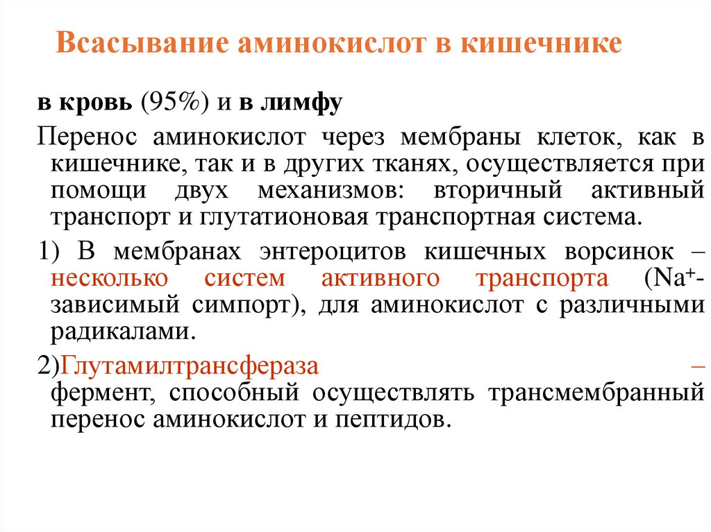 пищеварении, транспорт аминокислот.