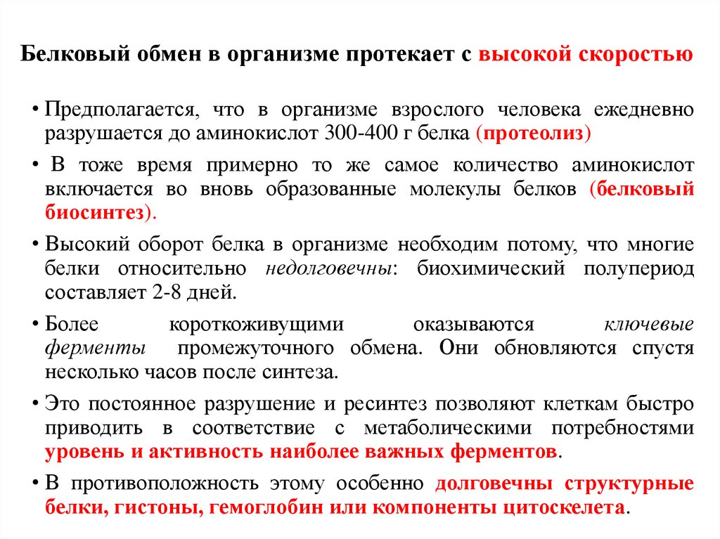 • Высокий оборот белка в организме необходим потому, что многие
