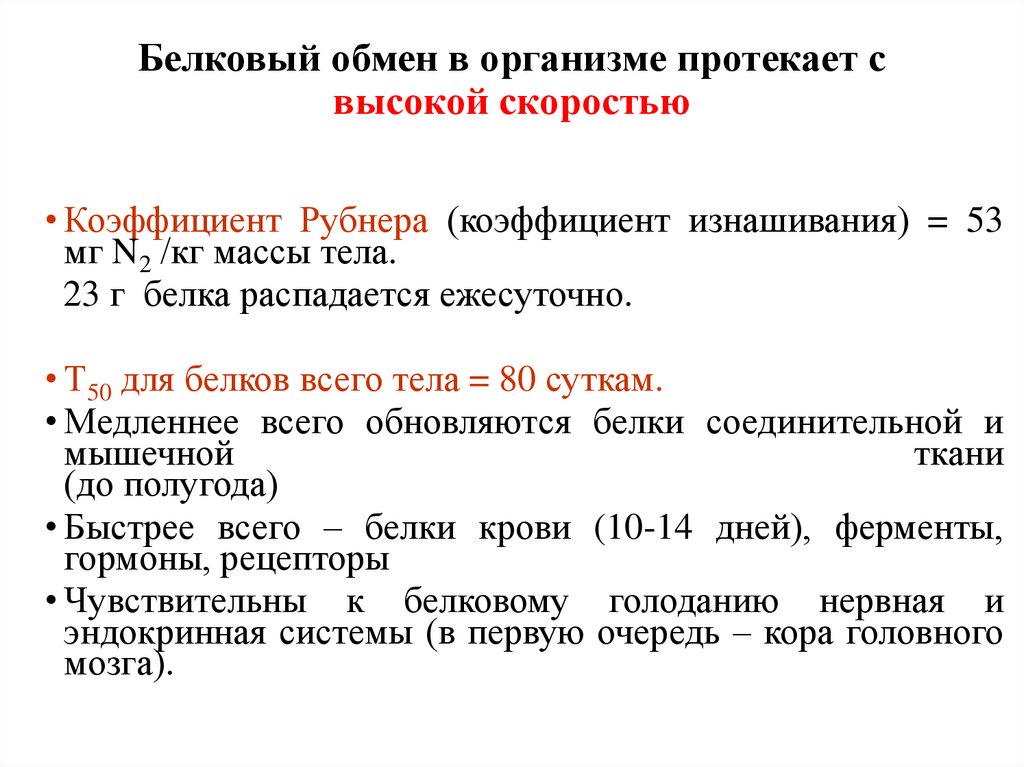5. Белковый обмен в организме протекает с высокой скоростью