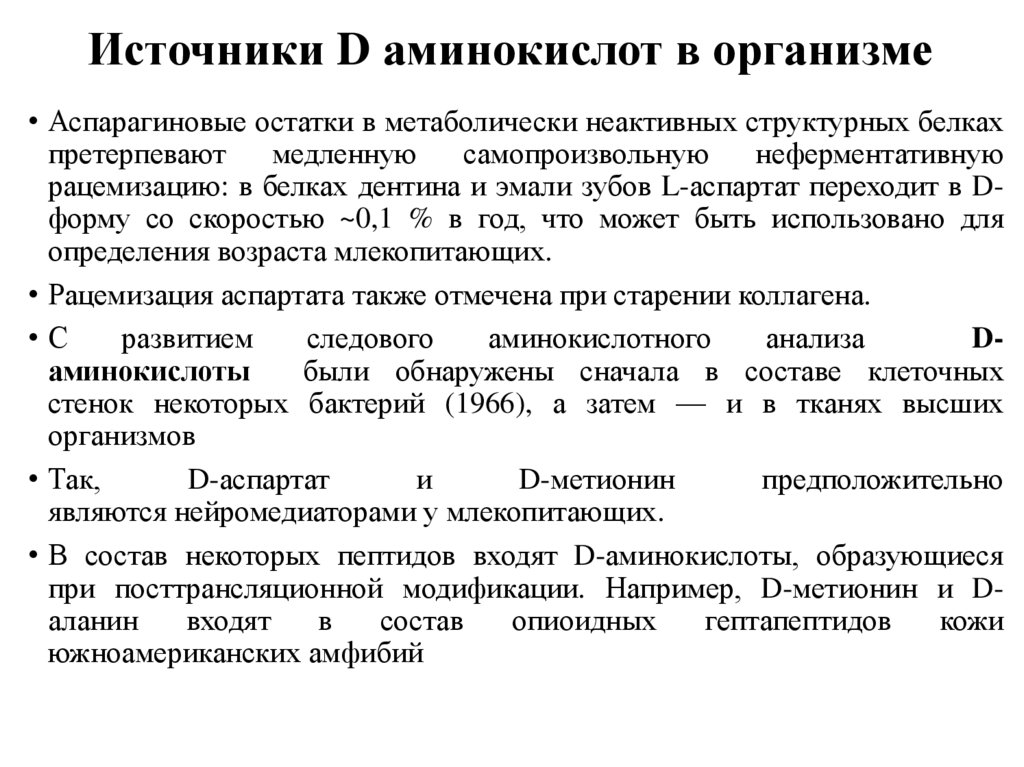 при посттрансляционной модификации. Например, D-метионин и Dаланин