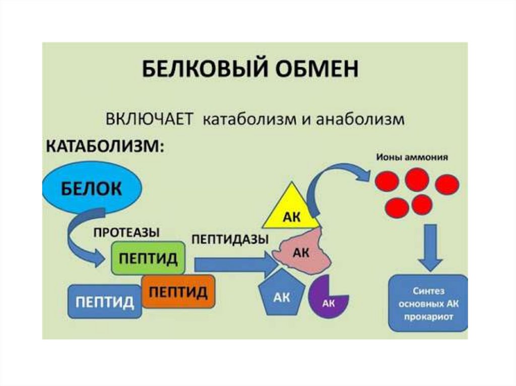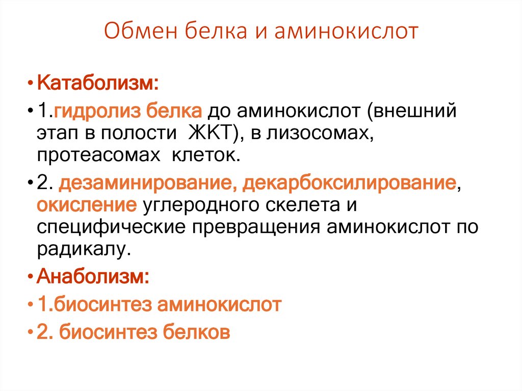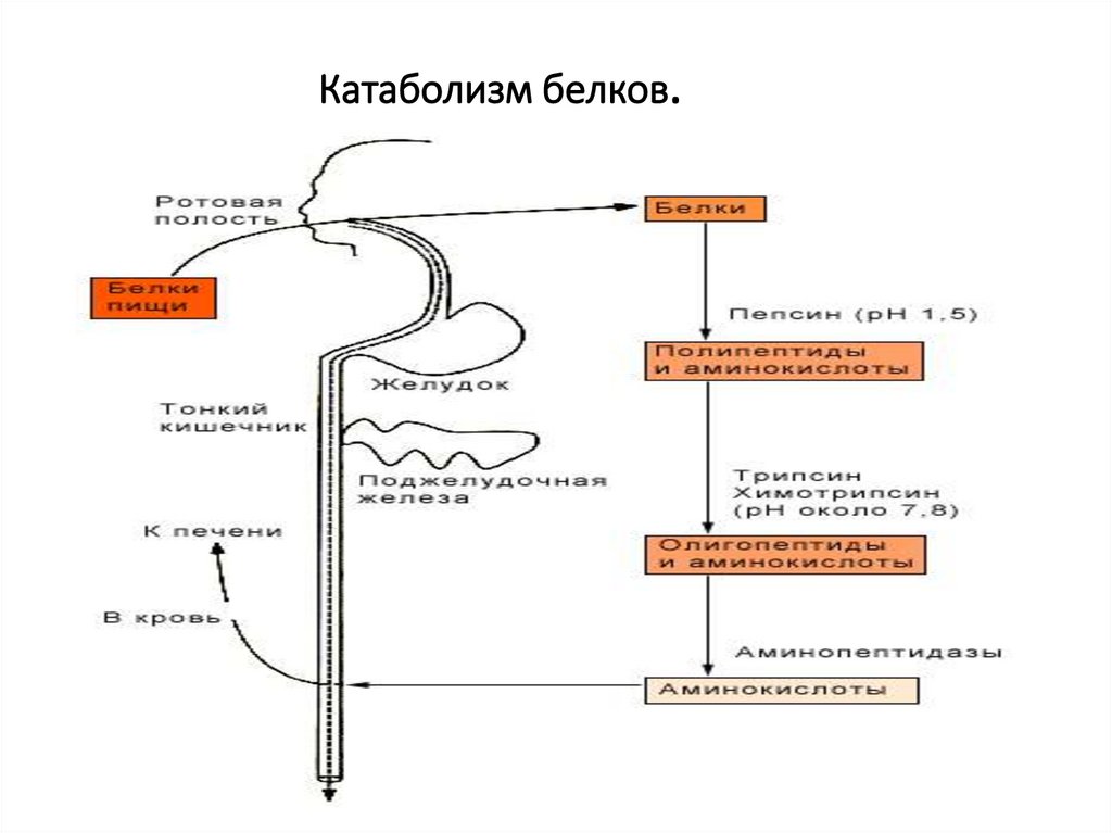 • Катаболизм:• 1.гидролиз белка до аминокислот (внешний