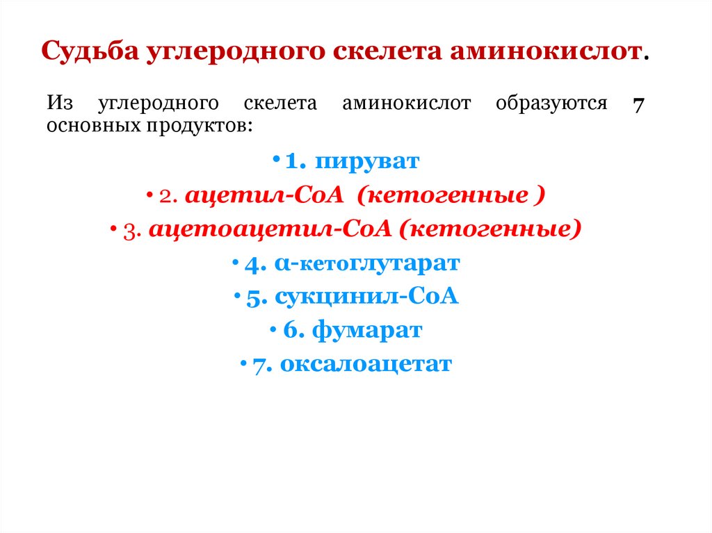 76. Судьба углеродного скелета аминокислот.