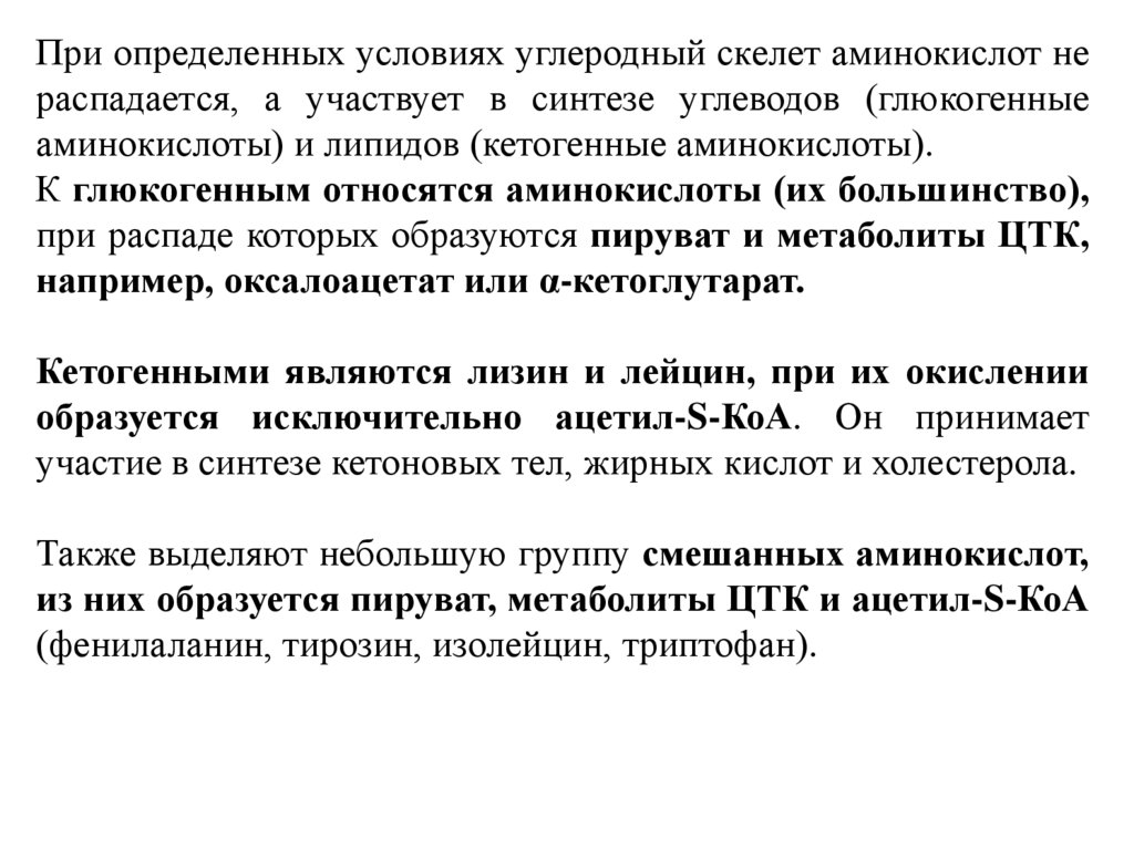 аминокислоты) и липидов (кетогенные аминокислоты).