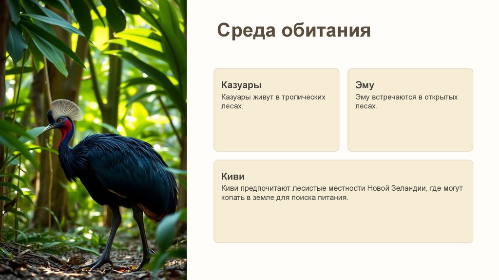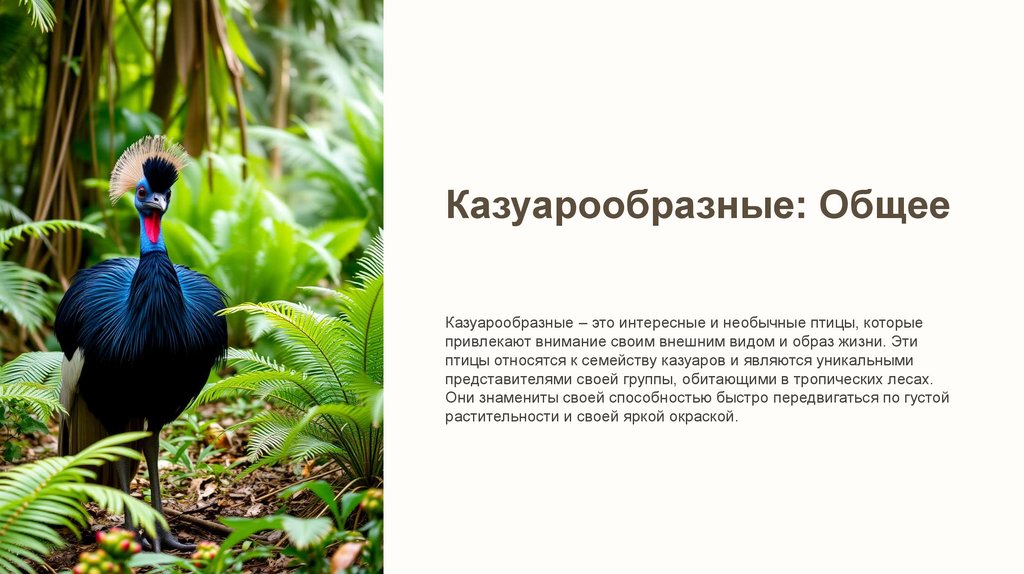Казуарообразные: ОбщееКазуарообразные – это интересные и необычные птицы, которые
