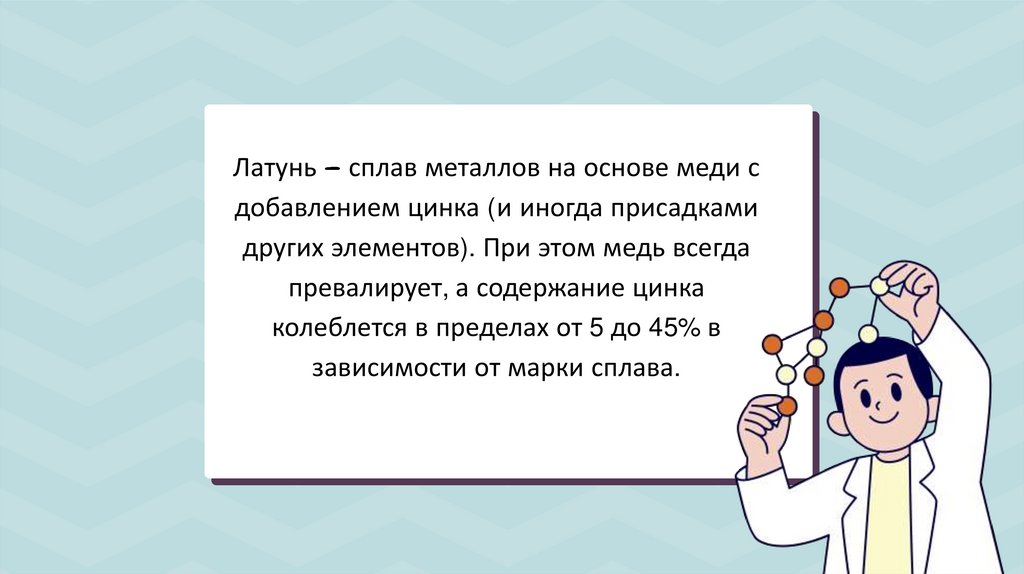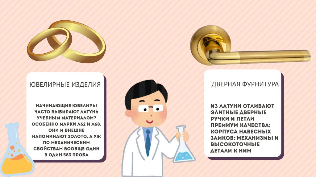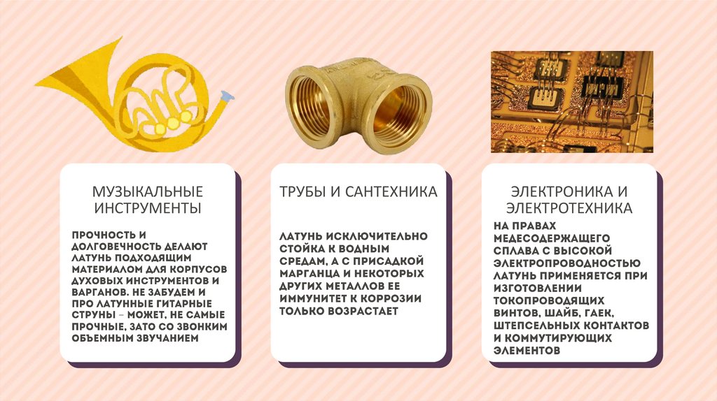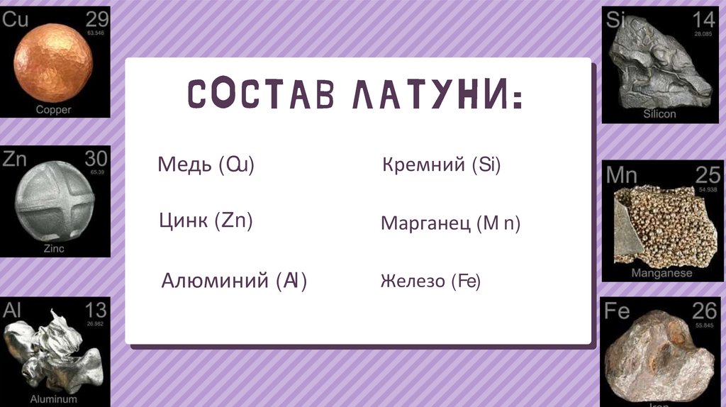Латунь сплав металлов на основе меди сдобавлением цинка (и иногда присадками