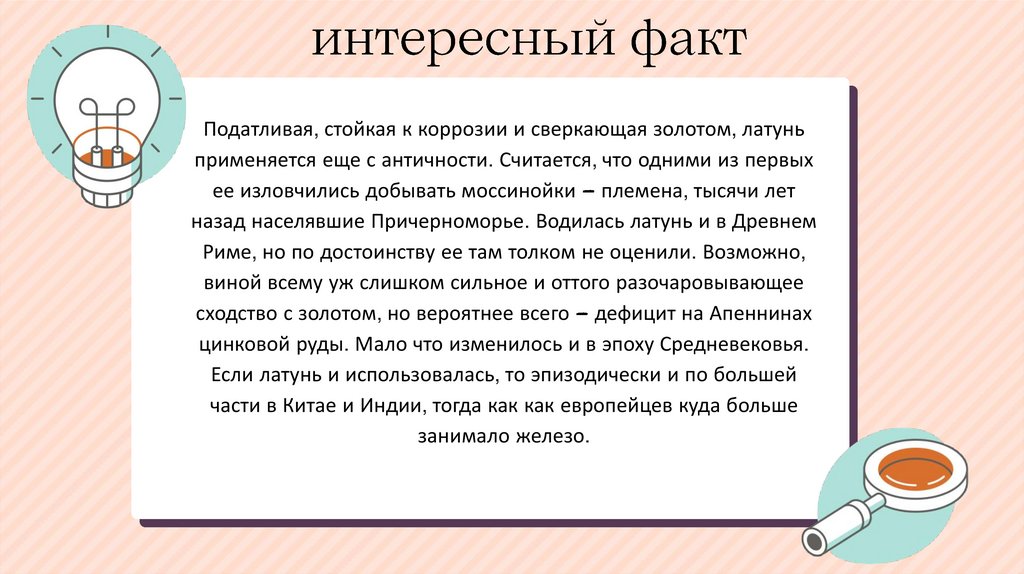 Податливая, стойкая к коррозии и сверкающая золотом, латуньприменяется еще с античности. Считается, что одними из первых