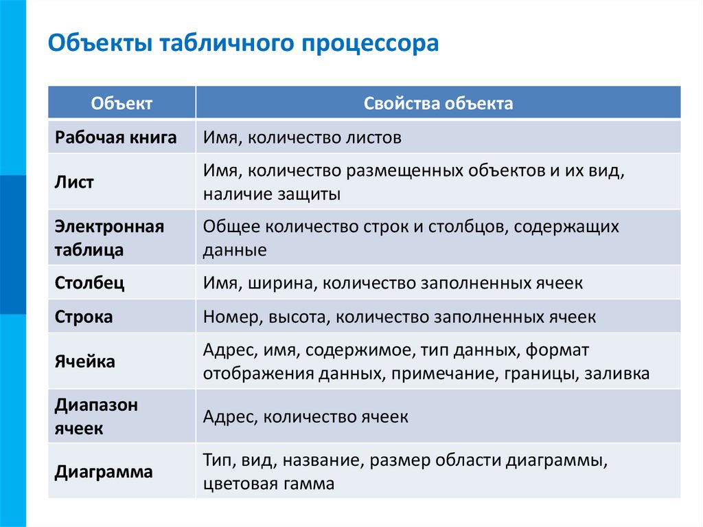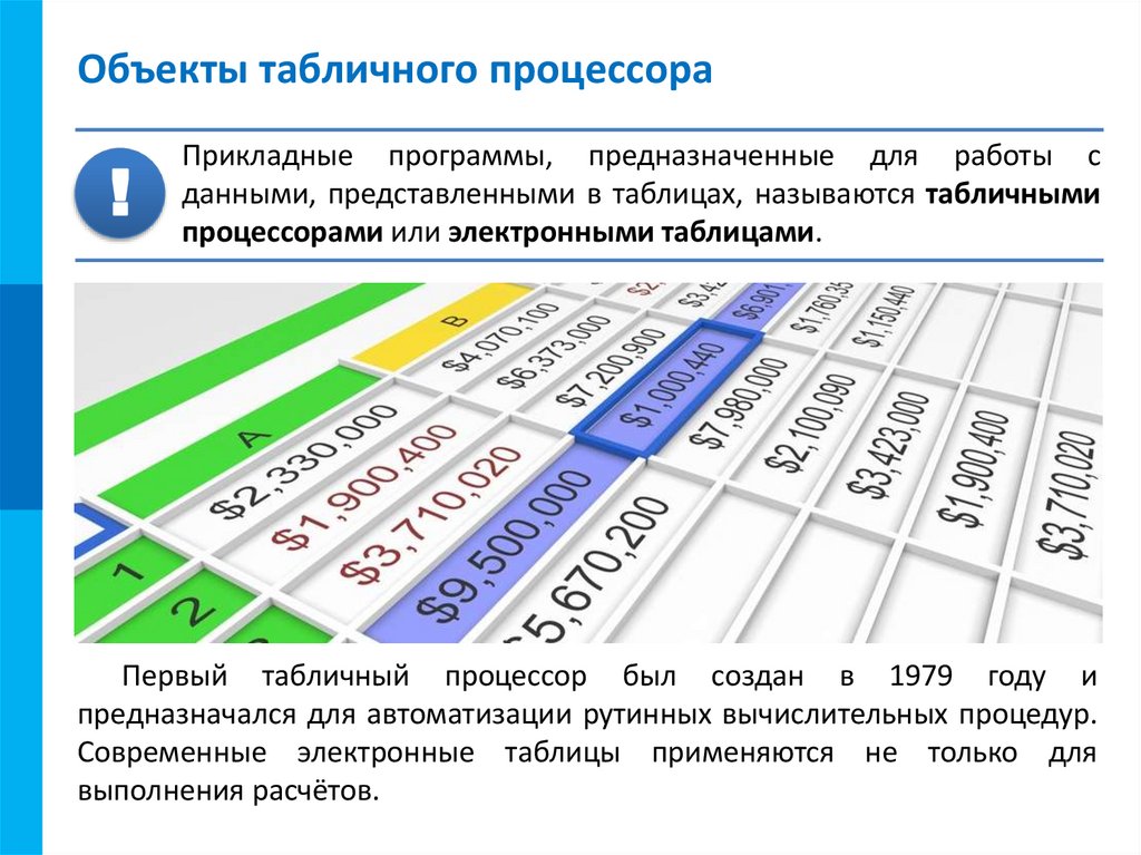 Обработка информации в электронных таблицах. Табличный процессор. Основные сведения (11 класс)