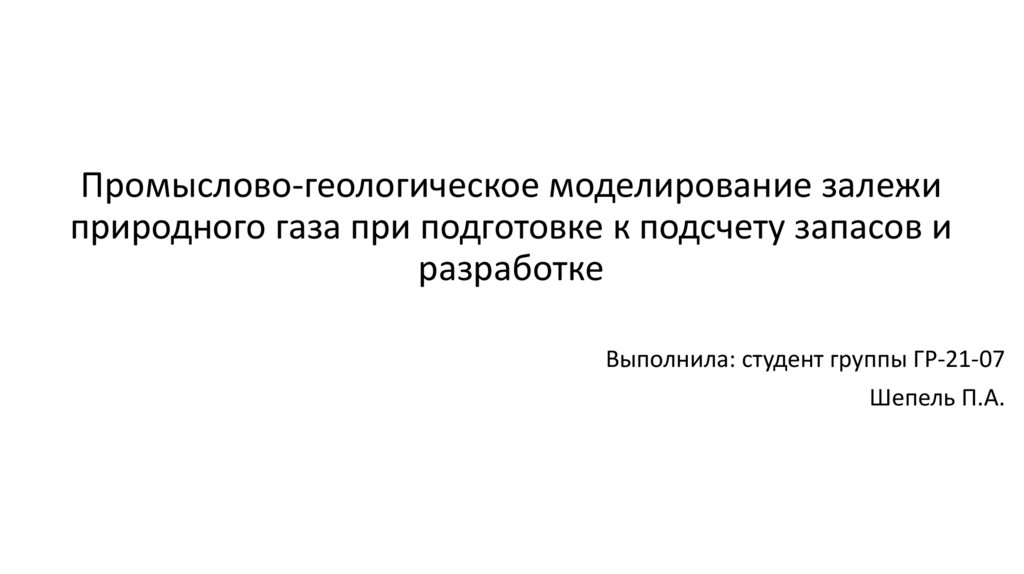 Промыслово-геологическое моделирование залежиприродного газа при подготовке к подсчету запасов и
