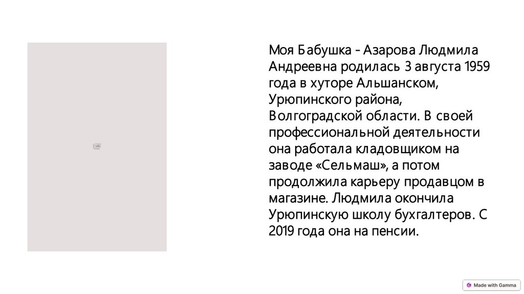 Моя Б абушка - Азарова ЛюдмилаАндреевна родилась 3 августа 1959