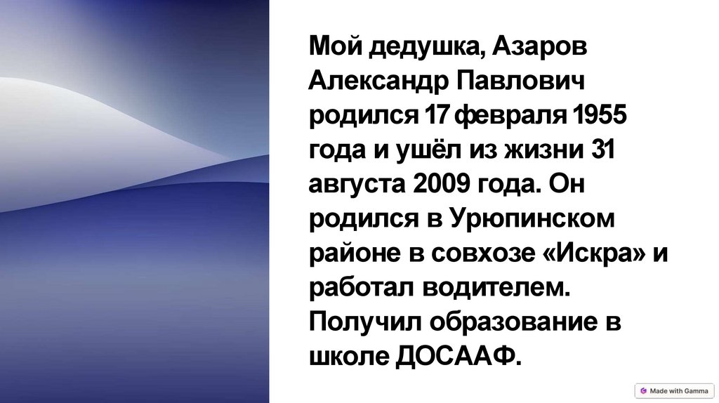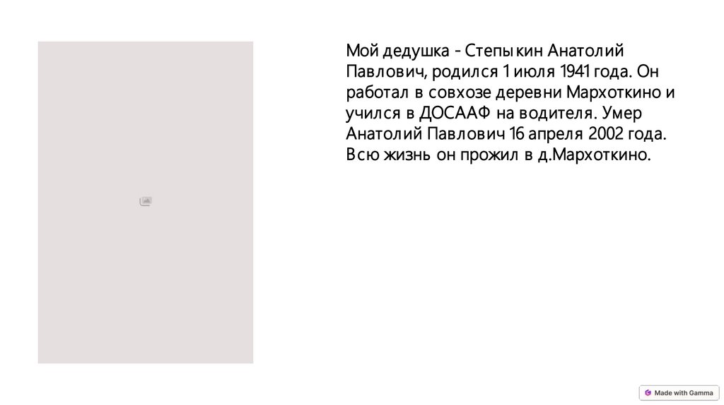 Мой дедушка - Степы кин АнатолийПавлович, родился 1 июля 1941 года. Он