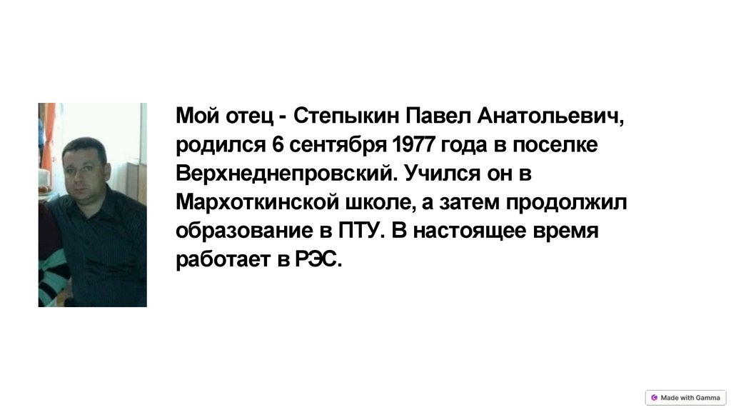 Мой отец - Степыкин Павел Анатольевич,родился 6 сентября 1977 года в поселке