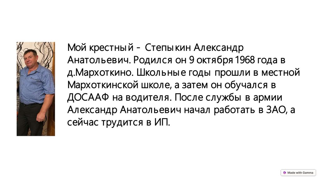 Мой крестны й - Степы кин АлександрАнатольевич. Родился он 9 октября 1968 года в