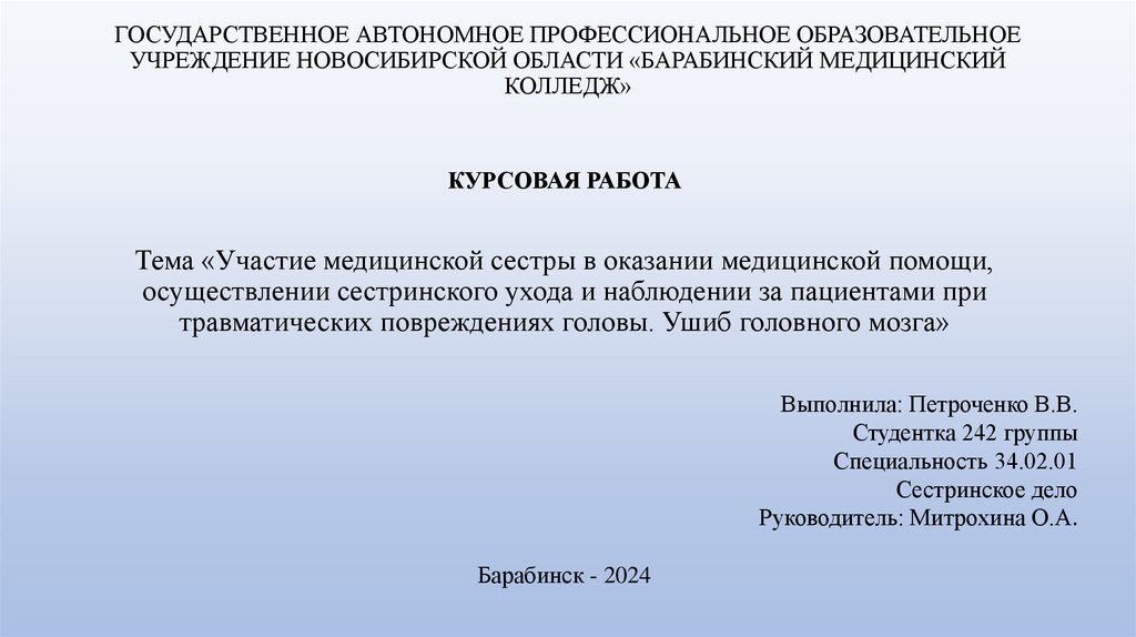 ГОСУДАРСТВЕННОЕ АВТОНОМНОЕ ПРОФЕССИОНАЛЬНОЕ ОБРАЗОВАТЕЛЬНОЕУЧРЕЖДЕНИЕ НОВОСИБИРСКОЙ ОБЛАСТИ «БАРАБИНСКИЙ МЕДИЦИНСКИЙ