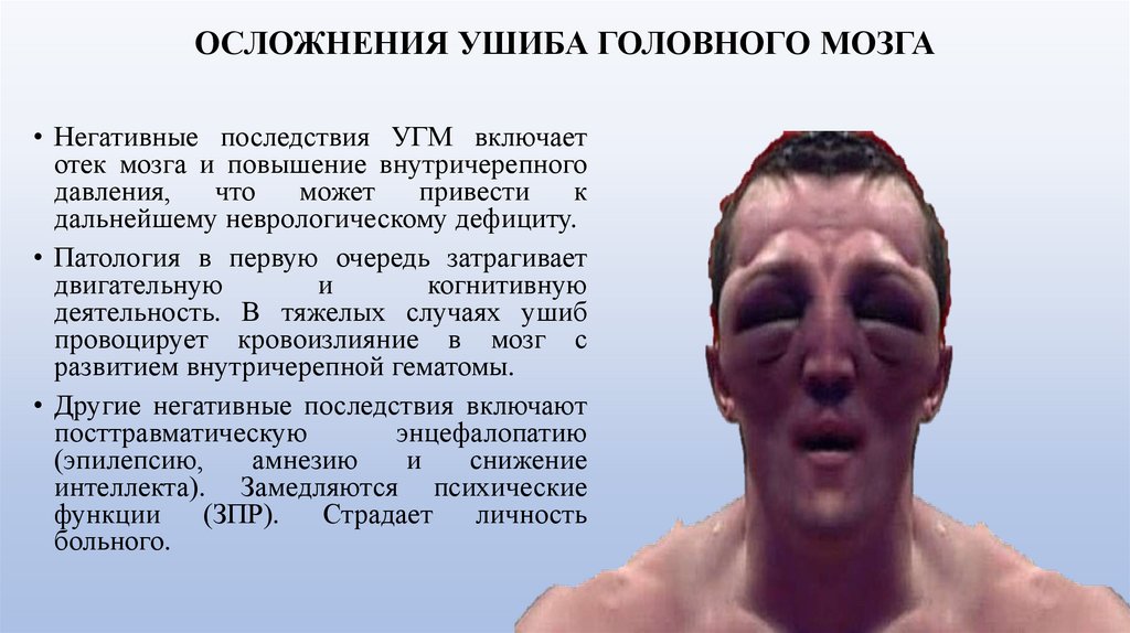травматических повреждениях головы. Ушиб головного мозга»