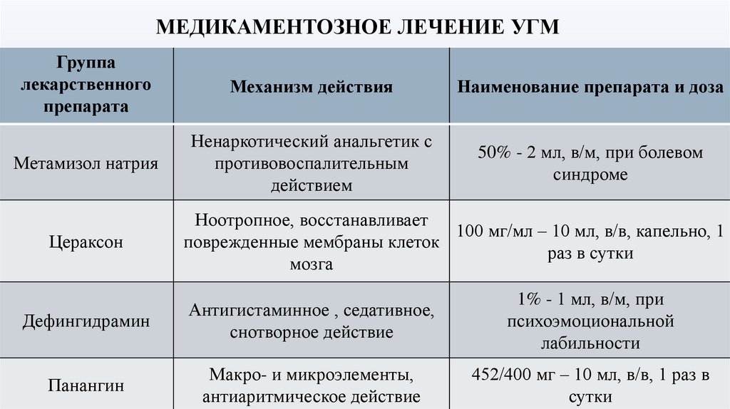 при болевом синдроме); Дефингидрамин (1% - 1 мл, в/м, при психоэмоциональной