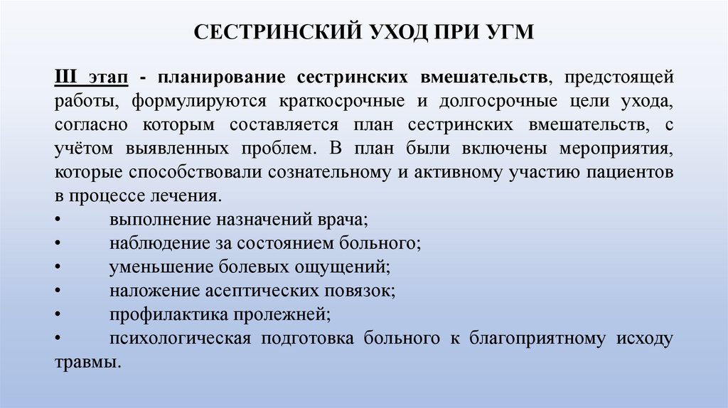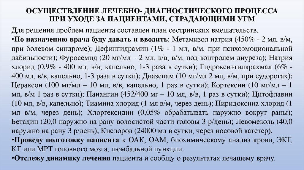 ОСУЩЕСТВЛЕНИЕ ЛЕЧЕБНО- ДИАГНОСТИЧЕСКОГО ПРОЦЕССАПРИ УХОДЕ ЗА ПАЦИЕНТАМИ, СТРАДАЮЩИМИ УГМ