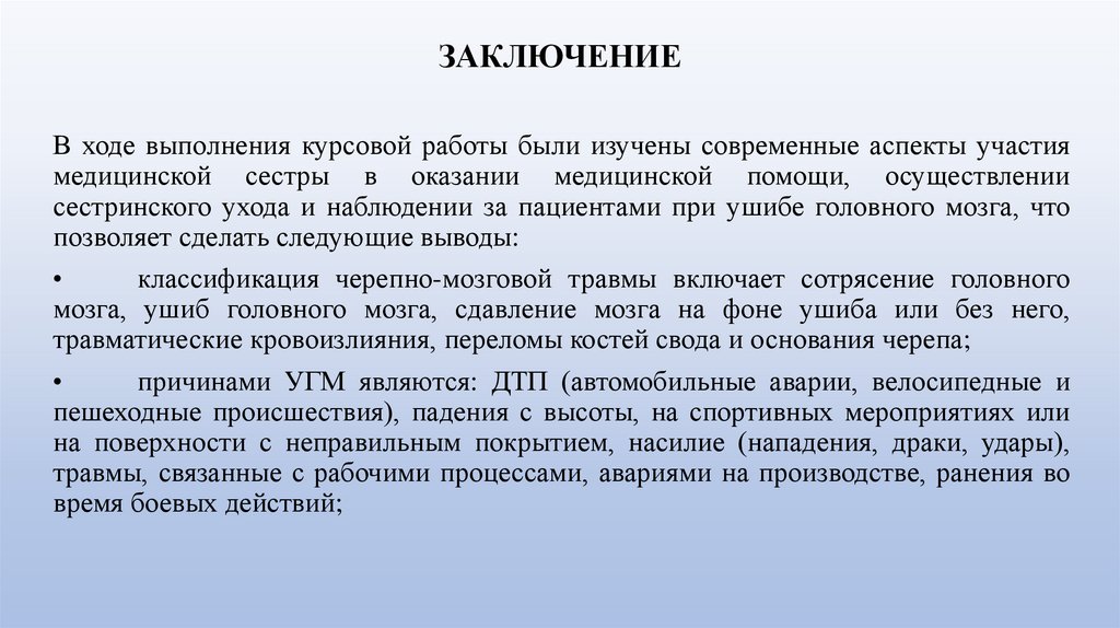 сестринского ухода и наблюдении за пациентами при ушибе головного мозга.