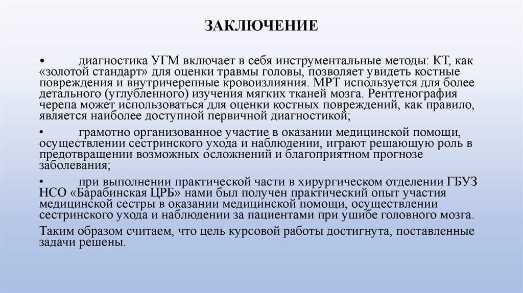 ЗАКЛЮЧЕНИЕдиагностика УГМ включает в себя инструментальные методы: КТ, как