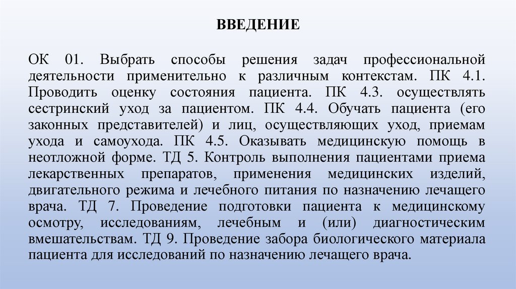 ВВЕДЕНИЕОК 01. Выбрать способы решения задач профессиональной