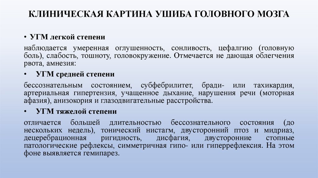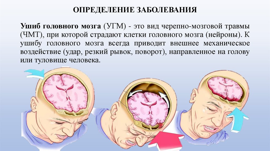ОПРЕДЕЛЕНИЕ ЗАБОЛЕВАНИЯУшиб головного мозга (УГМ) - это вид черепно-мозговой травмы