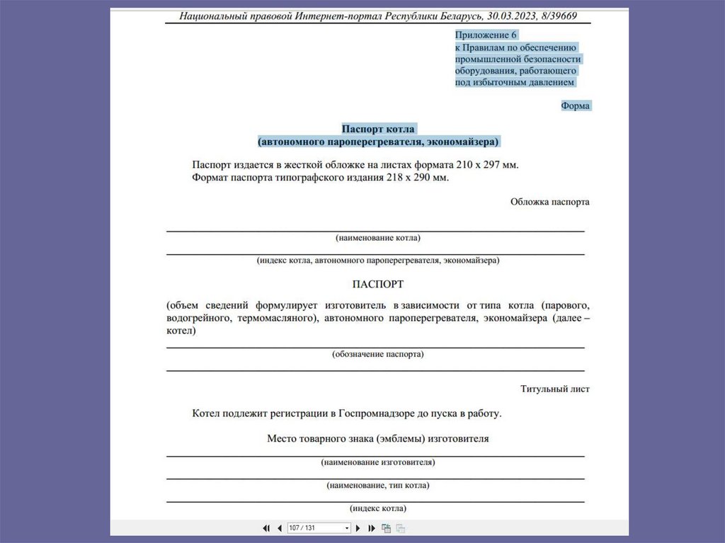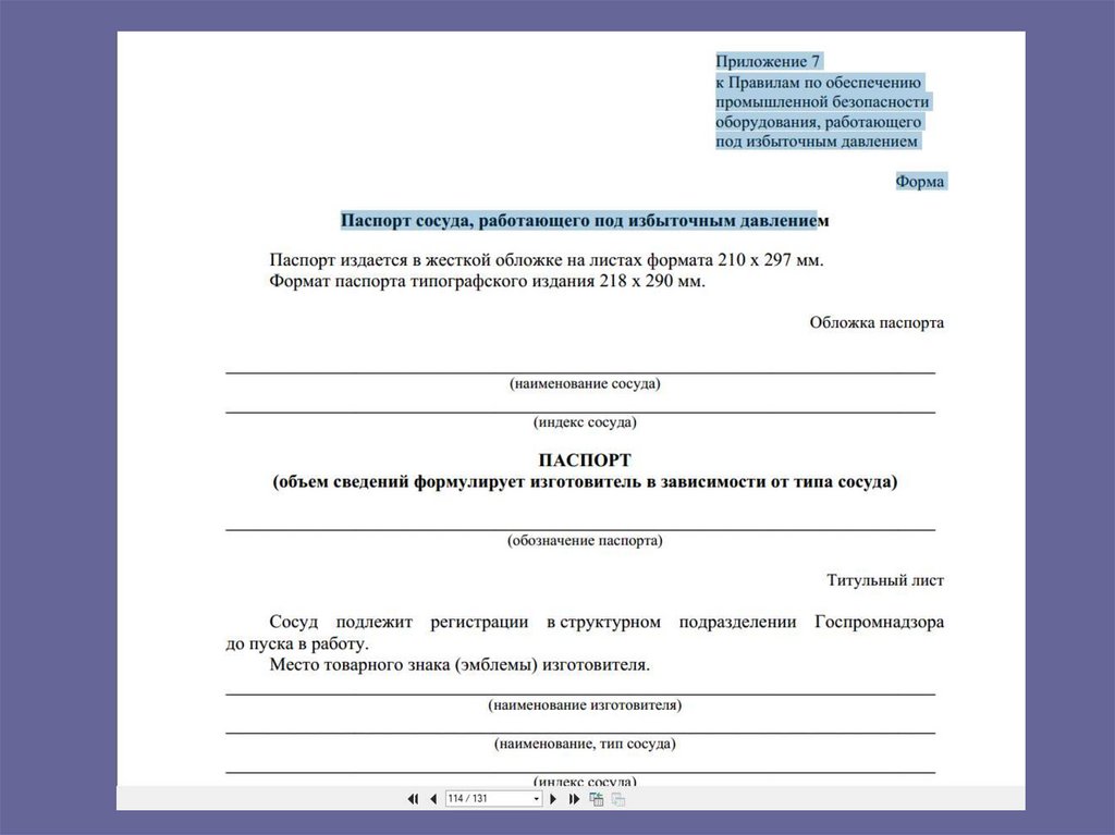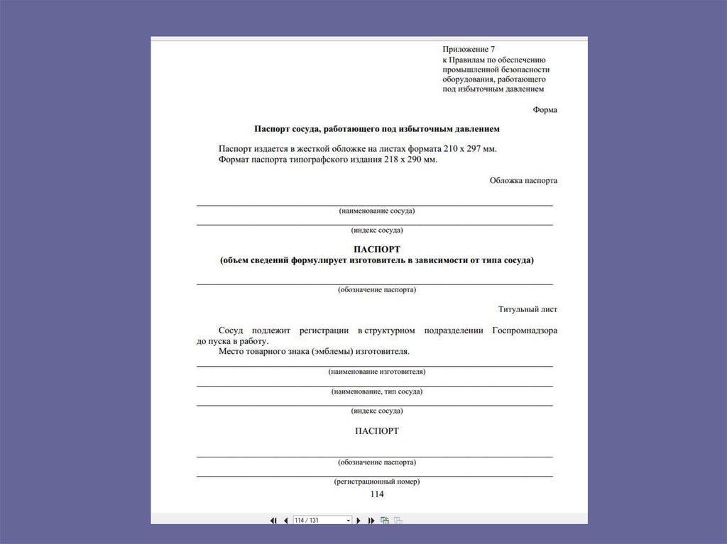 паспортом на сосуд!