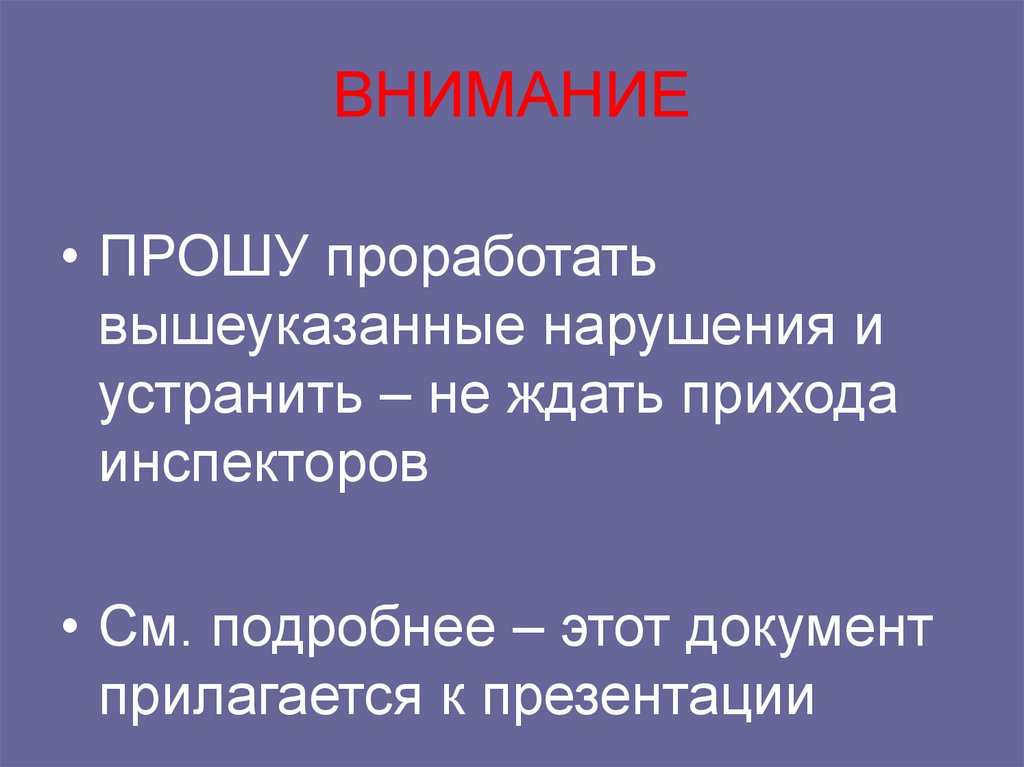 • ПРОШУ проработатьвышеуказанные нарушения и