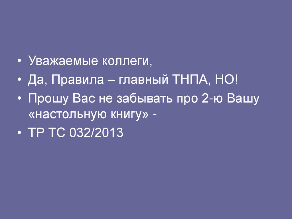 • Уважаемые коллеги,• Да, Правила – главный ТНПА, НО!