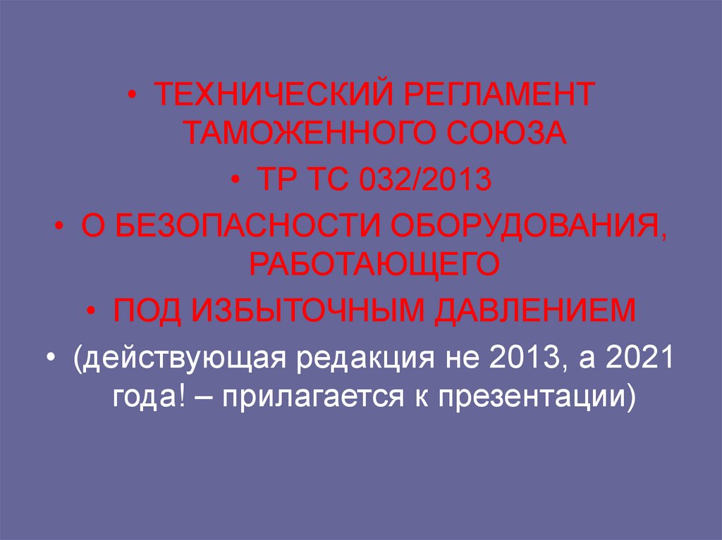 • ТР ТС 032/2013 Технический регламент Таможенного союза «О