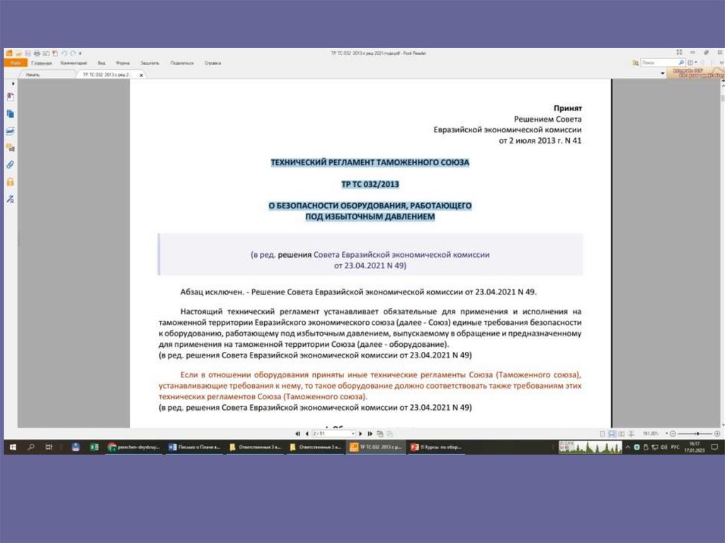 • Свой экземпляр ТР ТС 032/2013;