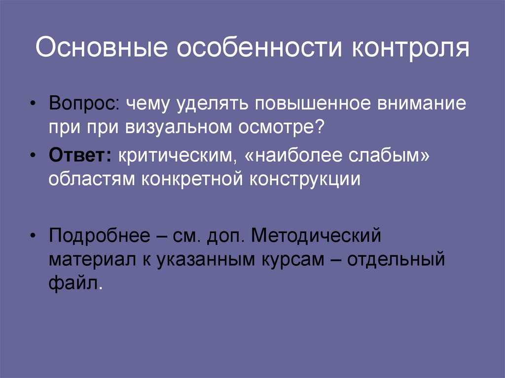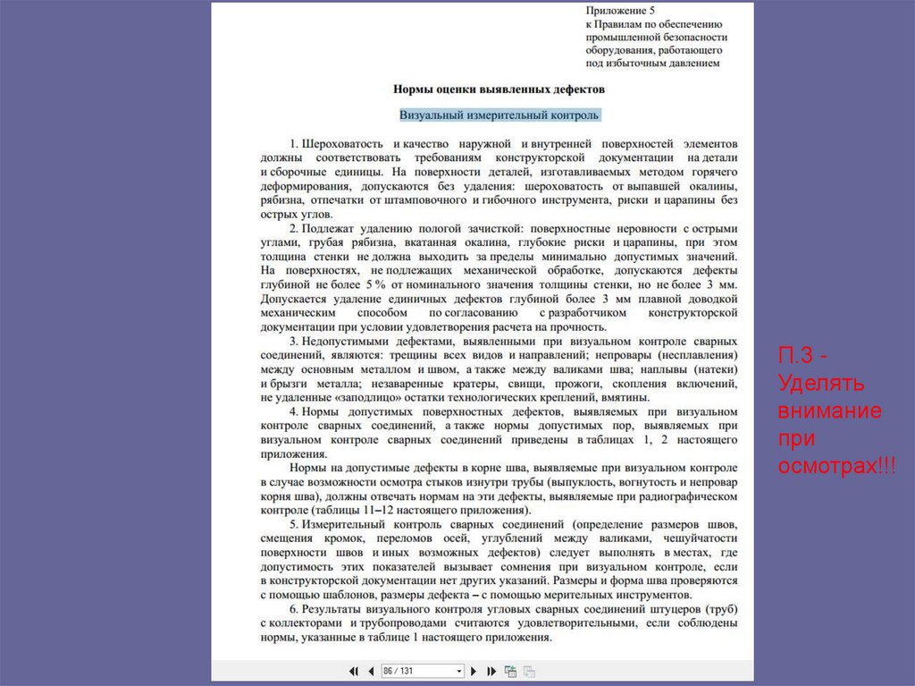 • Вопрос: чему уделять повышенное вниманиепри при визуальном осмотре?
